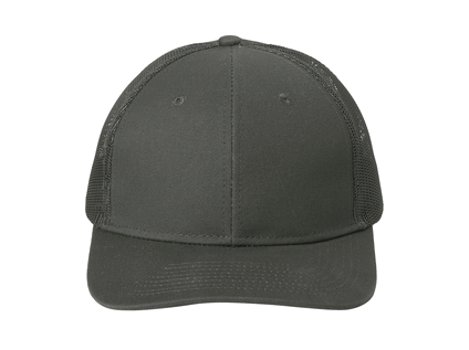 - Fabric: 100% cotton twill front panels and bill (Solids); 65/35 polyester/cotton twill front panels and bill (Heathers); 100% polyester mesh mid and back panels